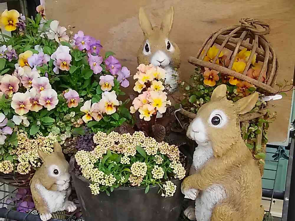 可愛らしいですね。😀兎さん🐰とお花のコラボ💐