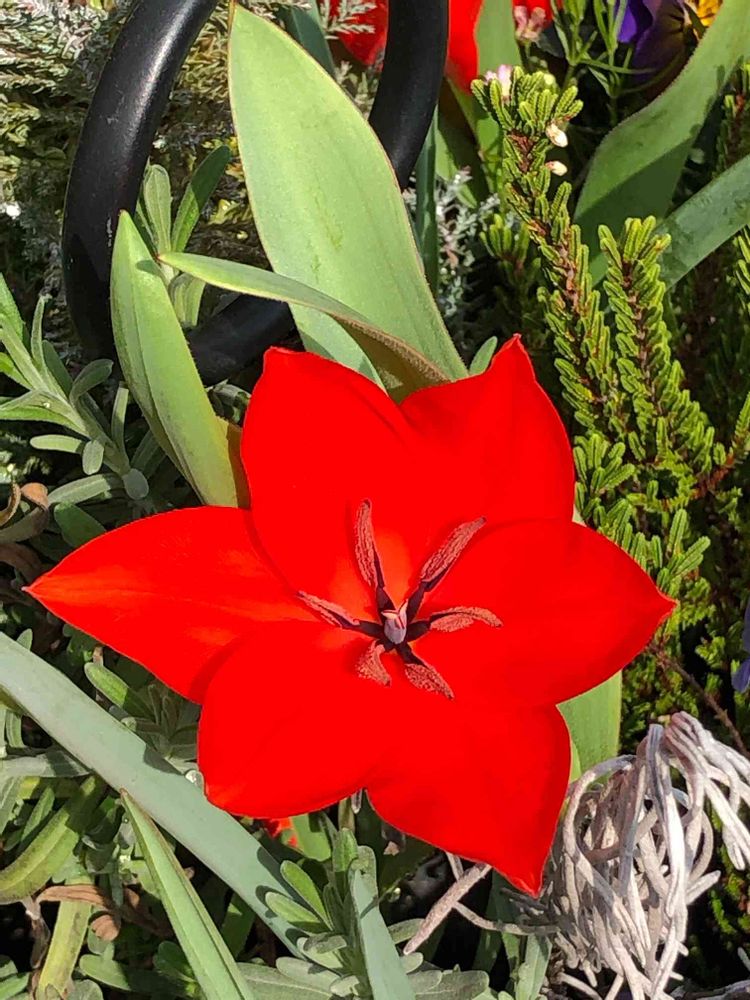 去年の秋に作った寄せ植えに忍ばせていたチューリップの球根が咲きました🌷