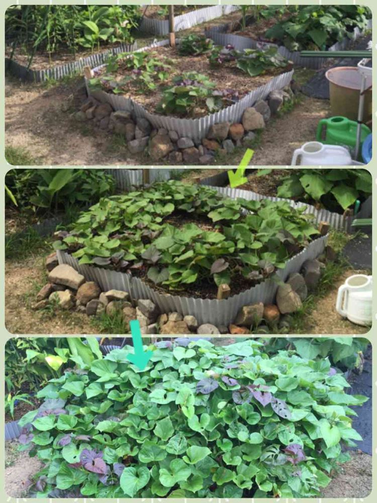 あの新芽が伸びてくると蔓が返しと言って、新芽辺りを引っ張り上げて真ん中辺りに寄せると美味しいサツマイモになるんですよ😆