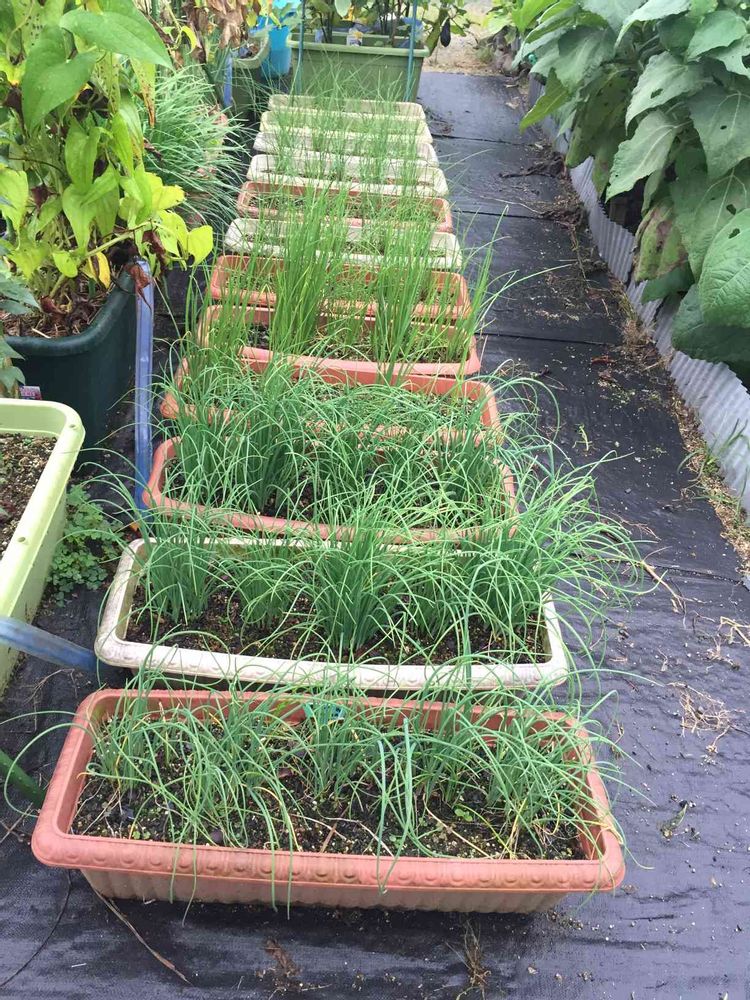 放置プランターのネギ類😊