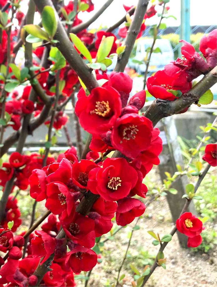 🤣これだけ真っ赤❤️な木瓜の花✨
