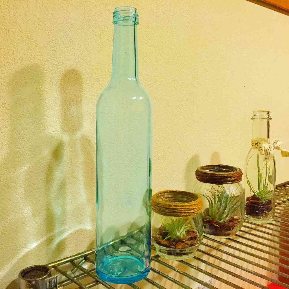 あとは化粧石(軽石小粒を洗って乾かして)を入れて下に重心を作って、丈の長いナチュラルな色のドライフラワーを飾る。