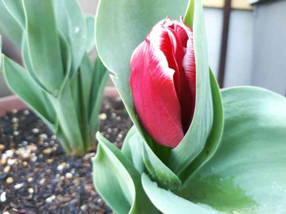 白の縁どりの赤いチューリップ