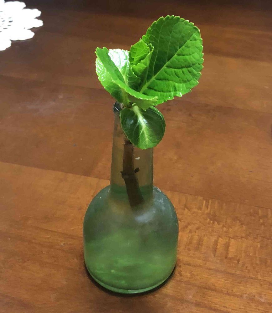 一輪挿しにして、新芽の生命感を部屋の中で楽しみます。