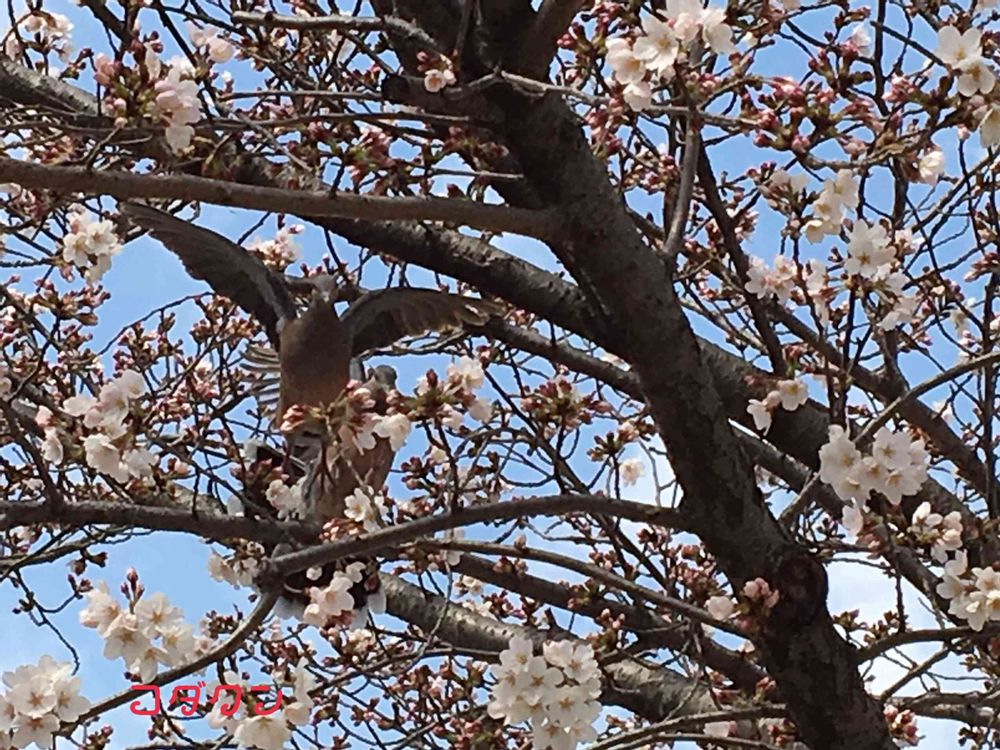 🐦鳩も、桜たべるのね〜〜🎶
