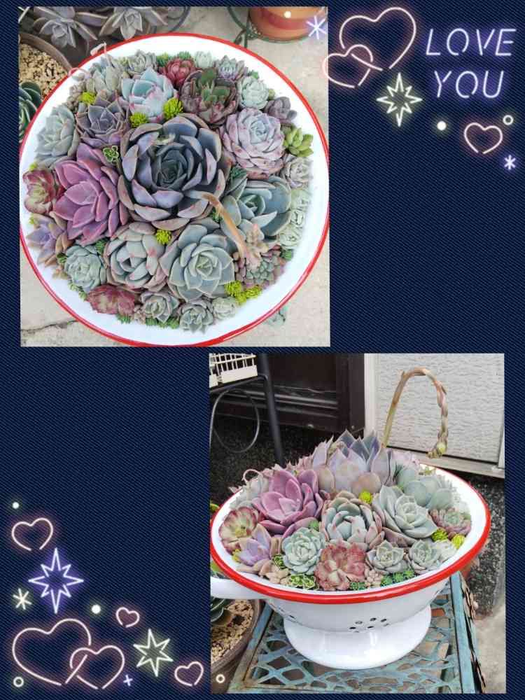 このコランダーのためにポチった多肉ちゃん贅沢に使ったよ😁