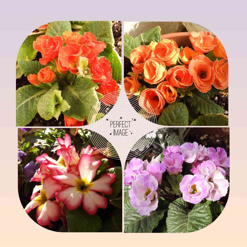 今年の我が家のプリムラたち。上の二つは同じような色に見えるけど、左はオレンジ、右は黄色です。