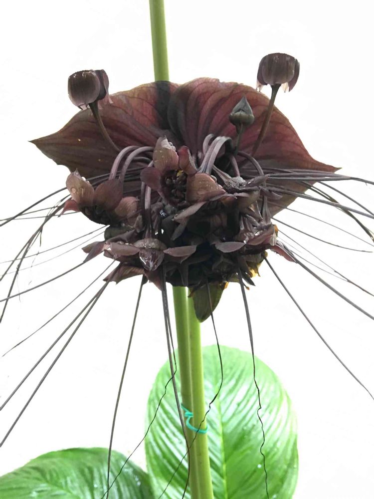開花から2週間以上経っても、まだ咲き続けています。盾のように開いているのは苞で上向きに立っているのがお花です。