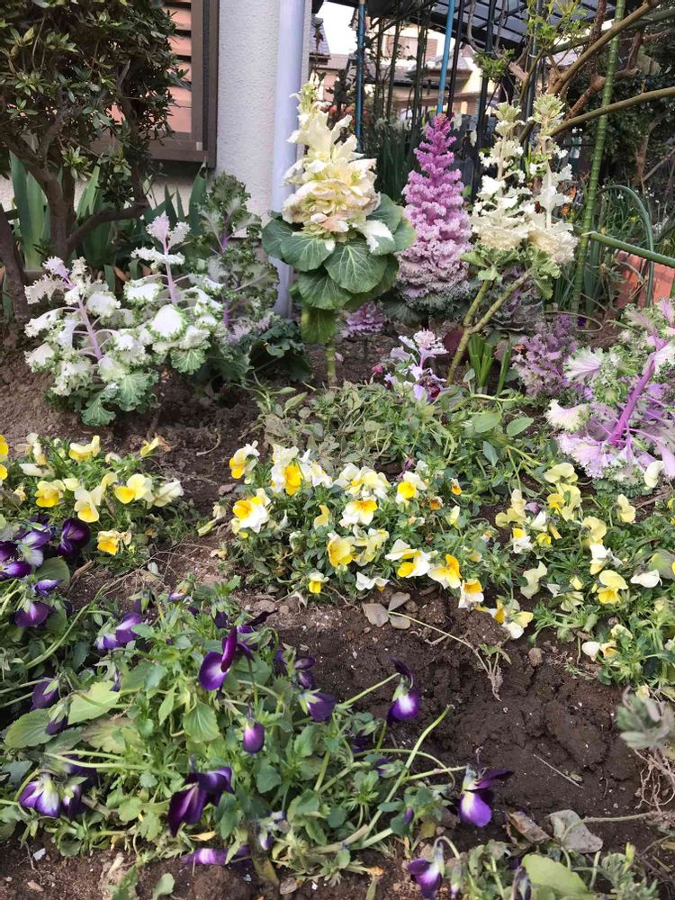 パンジーは足利フラワーパークで無料で葉牡丹は正月の庭用で再利用で植え替えしました(^-^)