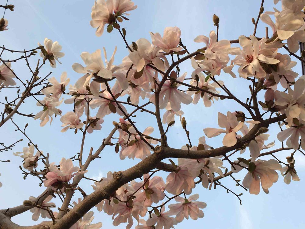 あっという間に満開になりました。夕日を受けてピンク色です。