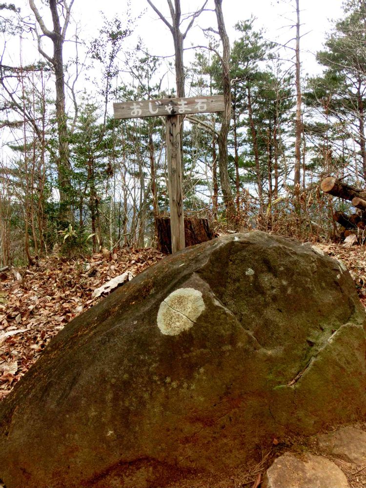 登山口からおよそ30分、アカマツ通りと名づけられた緩登の道を歩くと、登山道の真ん中に「おじゃま石」と命名された石が邪魔をしていた...誰が名付けたのかなぁ 😅💦もう汗だく!