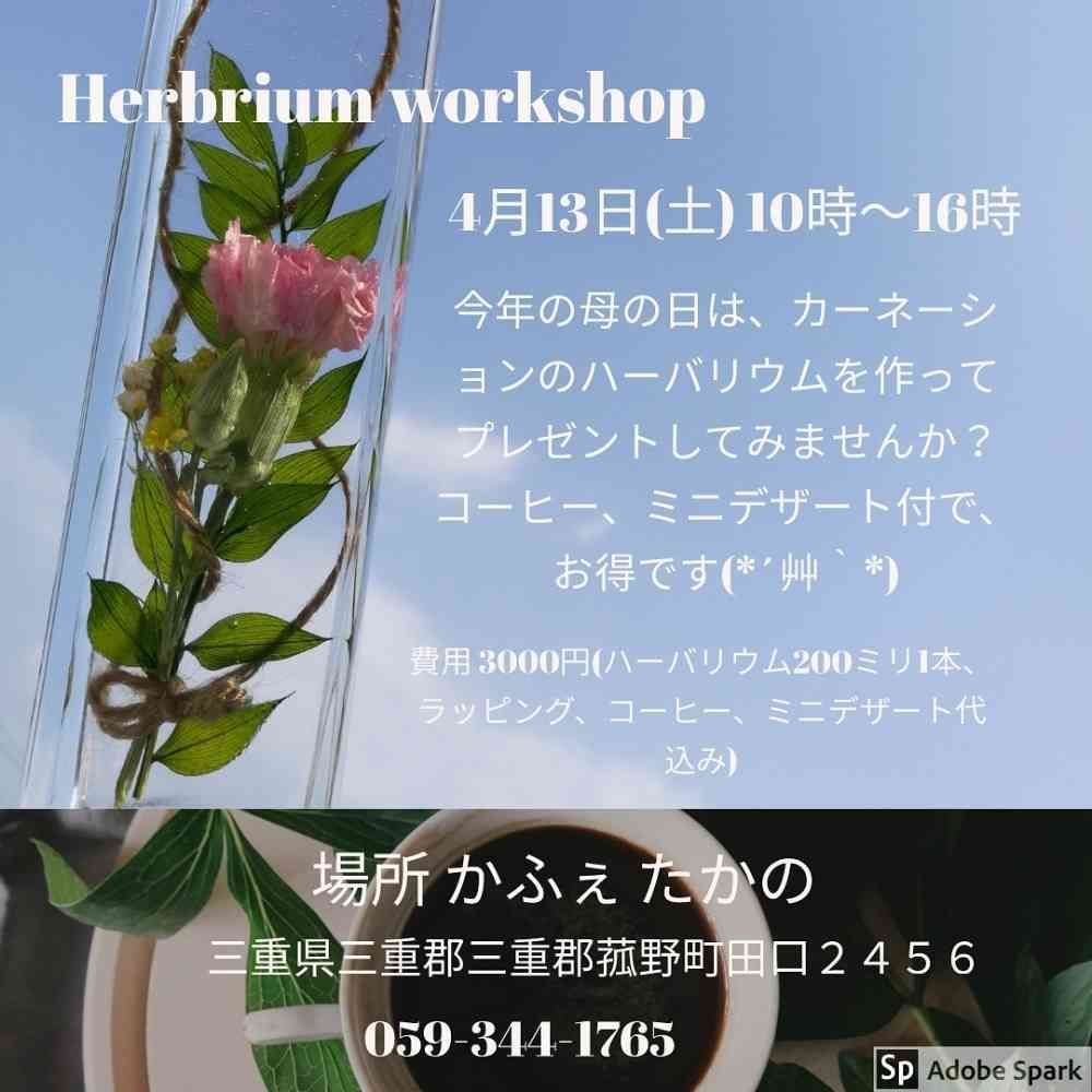 かふぇたかのさんにて、ハーバリウムのワークショップが決まりました。美味しいコーヒーとデザートも付いてきます💕