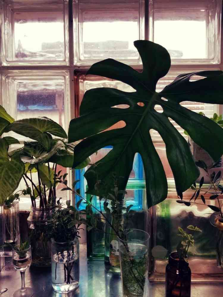 モンステラ一本水に挿して置いたらスゲー存在感。