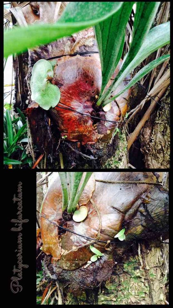 木に着生中のコウモリラン野性的なのが良いのかガンガン貯水葉出てきてますd(>∇<;)