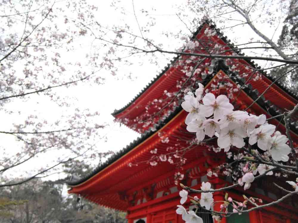侘び寂びの曇り空の桜は、やっぱりぼんやりしてしまうので、朱色の多宝塔をバックにすると、桜が映えました✨
