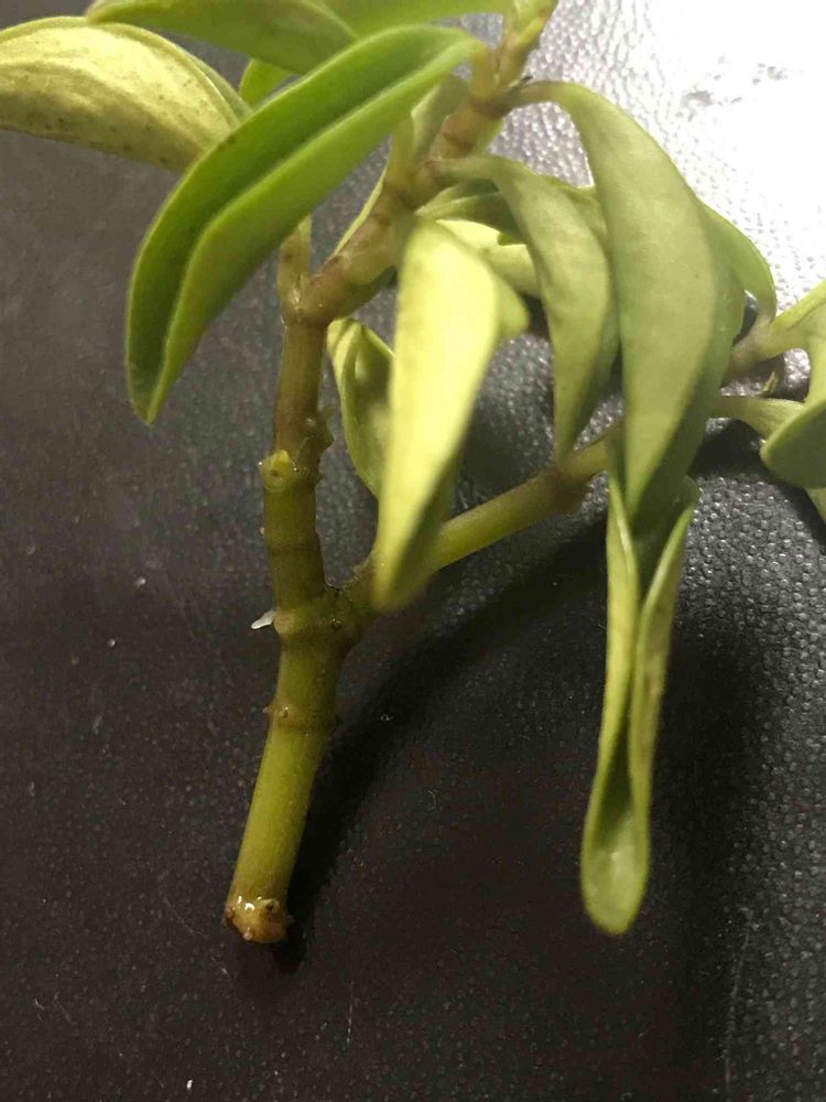2月ごろ、急な気温変化の日に蒸れでだめになったペペロミア。上の部分のこの一つだけ残っていました。