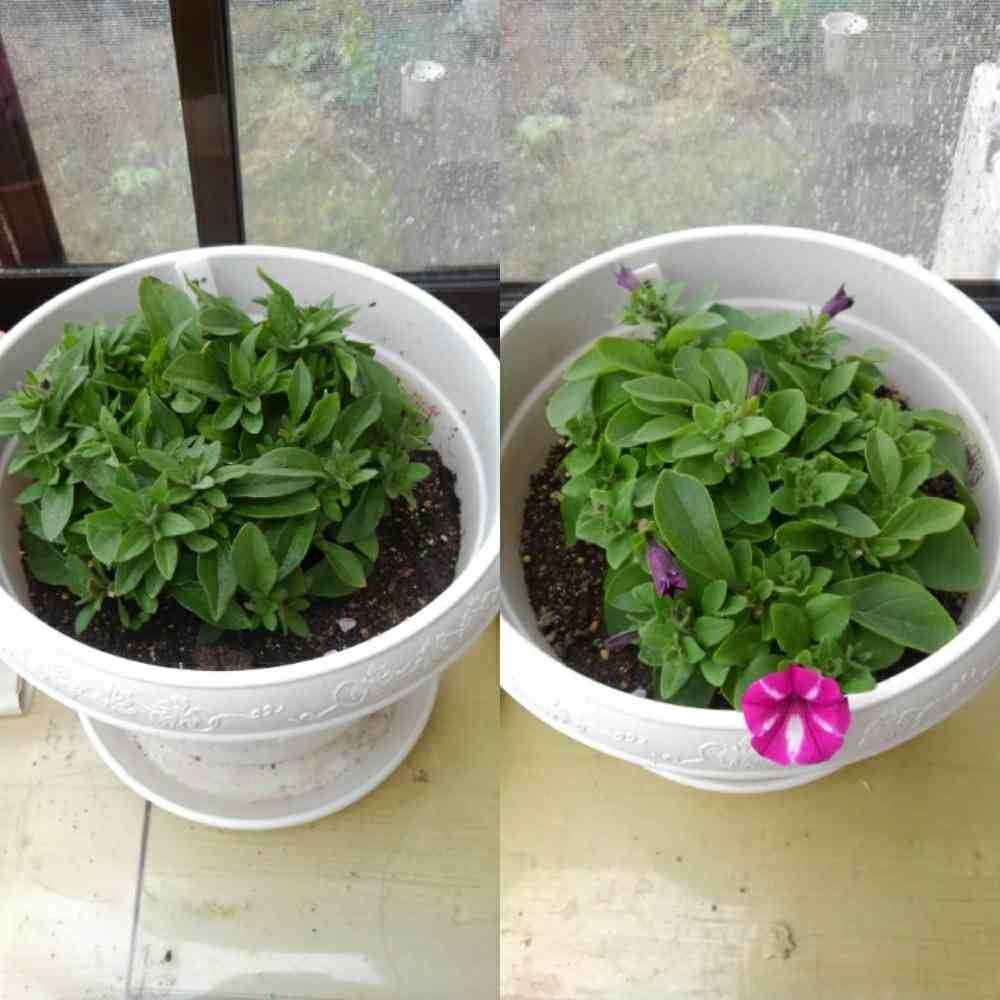 植え付けと摘芯後約2週間の、ペチュニアラズベリージャムと、ブルーベリージャム。