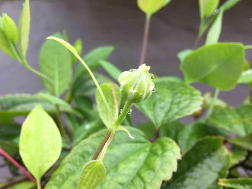 雨に濡れた、ベルオブウォーキングの2番花の蕾です(o^^o)☆