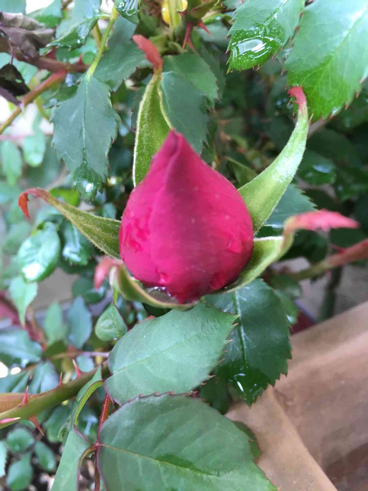 早いなぁ、まだ殆ど芽が出てないバラもあるのに。
