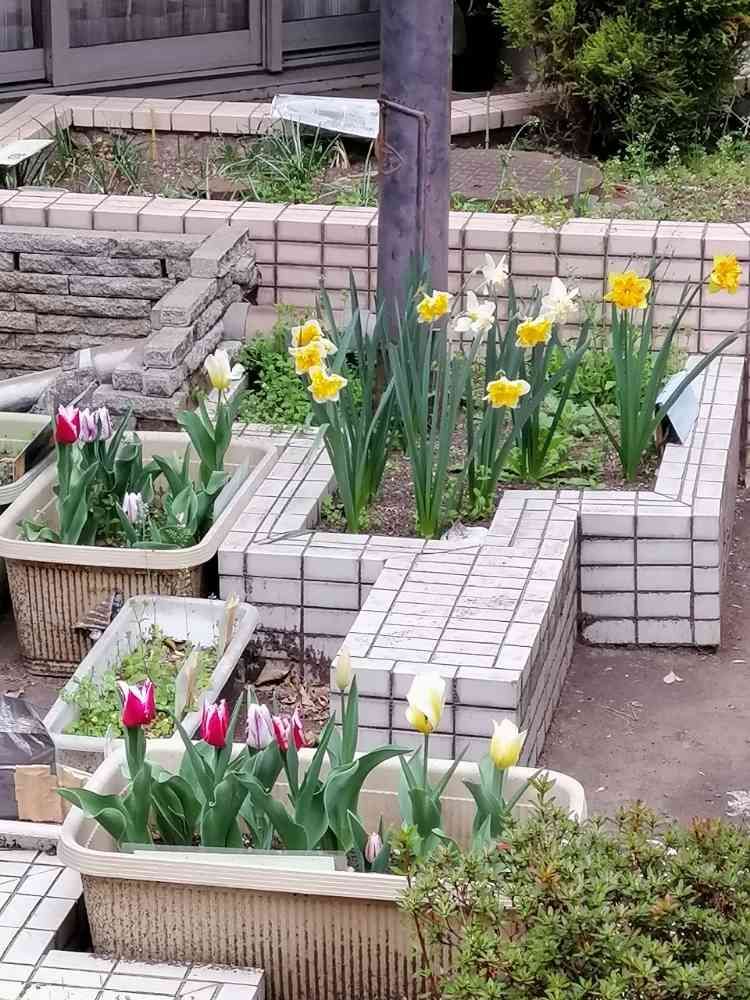 犬散歩道、小学校内の花壇に🌷🌷🌷可愛い~水仙💖