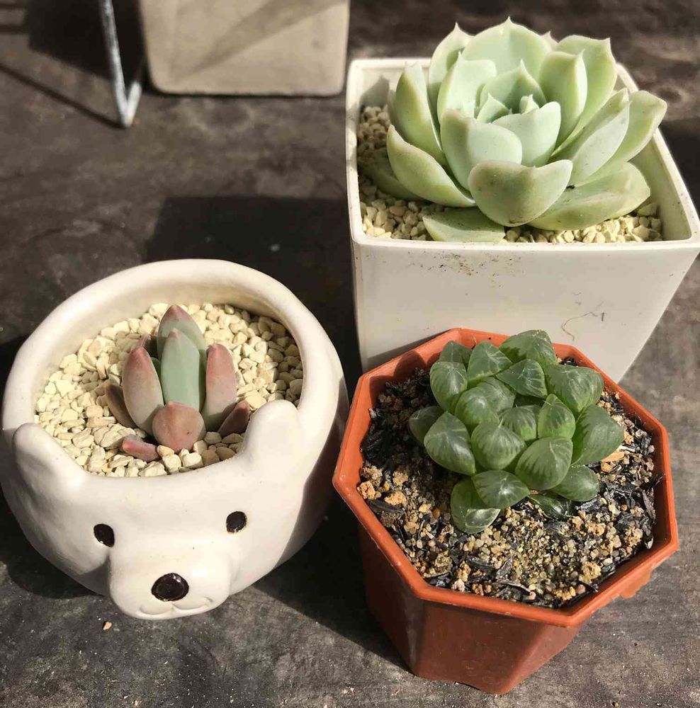 オブツーサ…ってハオルチアに似てますよね〜😁しろくまさんの鉢、丸くて白くて癒されますよね😌