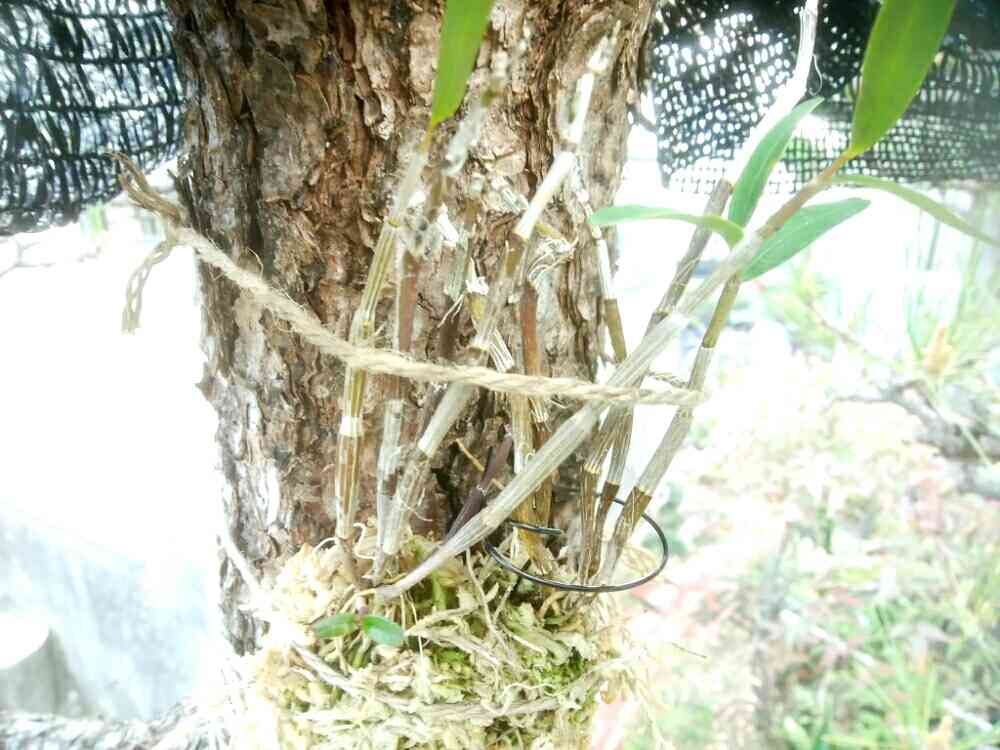 セッコク🌱 秋に松の幹にくっつけておいたら新芽が3つ出てきました🙏 雪の厳冬期にも耐える東洋の至宝ですね🗻