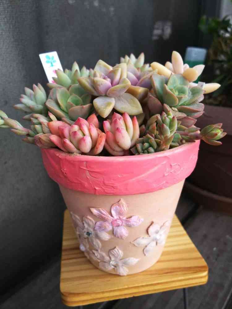 インスタのお友達にいただいた桜鉢に寄せ植えしました🌸