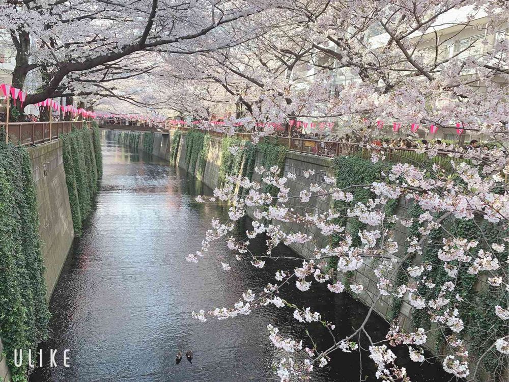 毎年きてる目黒川✨桜満開の一歩手前かな🌸カモのカップルが仲良く泳いでる〜✨