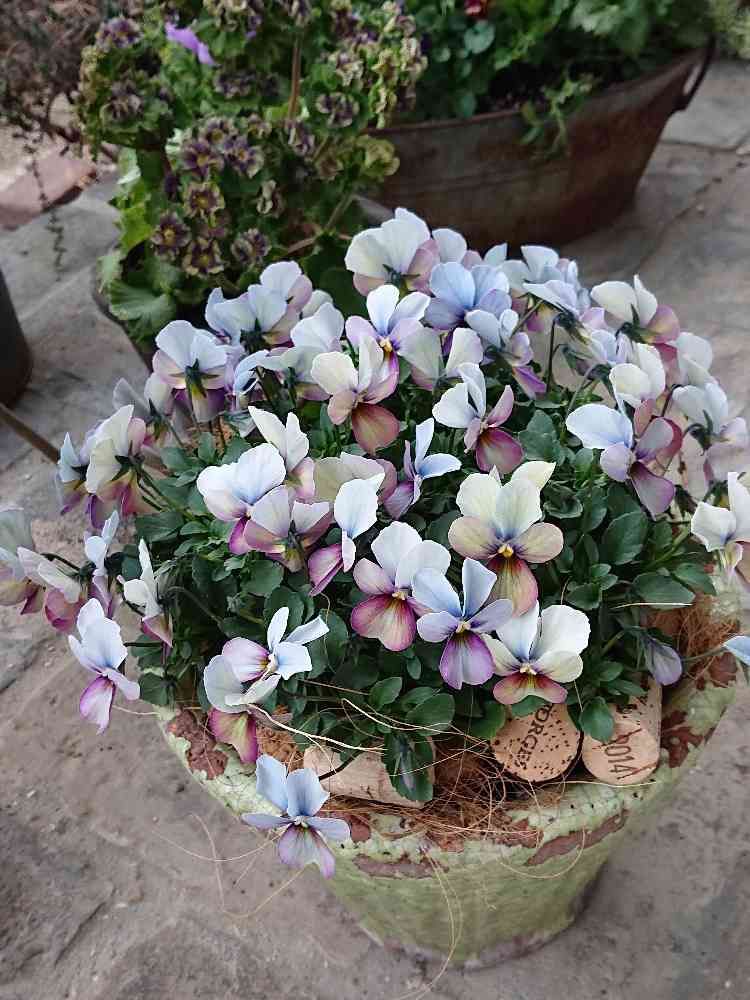 最近はまた色が変わり、淡い色で咲いています。何度も色が変化して楽しめるビオラ出下😍
