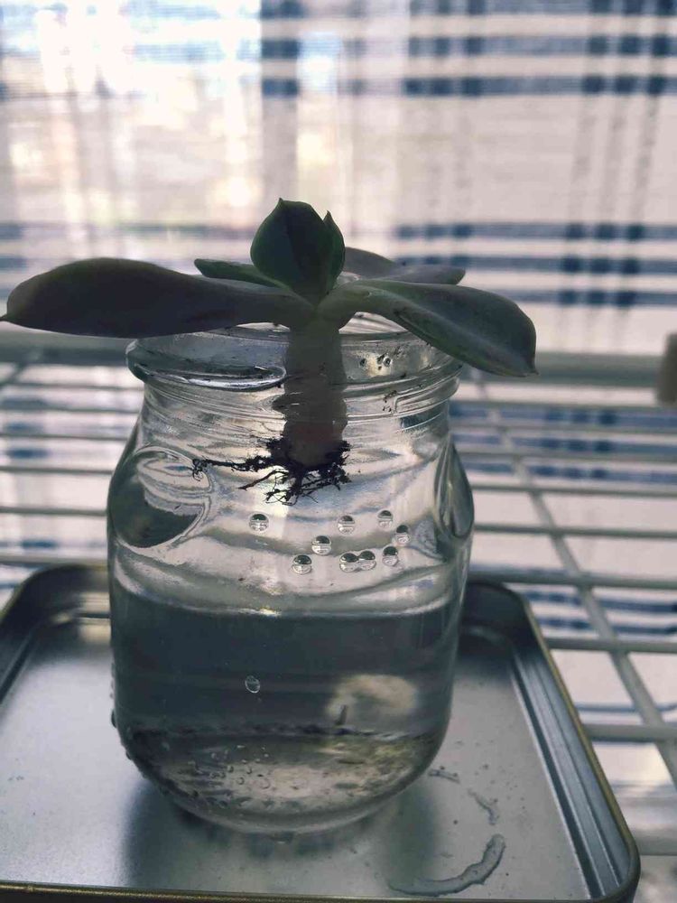 悪い根っこを取り除きメネデール100倍溶液に浸けてみた。このままでいいのかそれとも根っこの付け根を切り空中発根させた方がいいのか悩み中。誰かいい方法を教えて下さい。(T ^ T)
