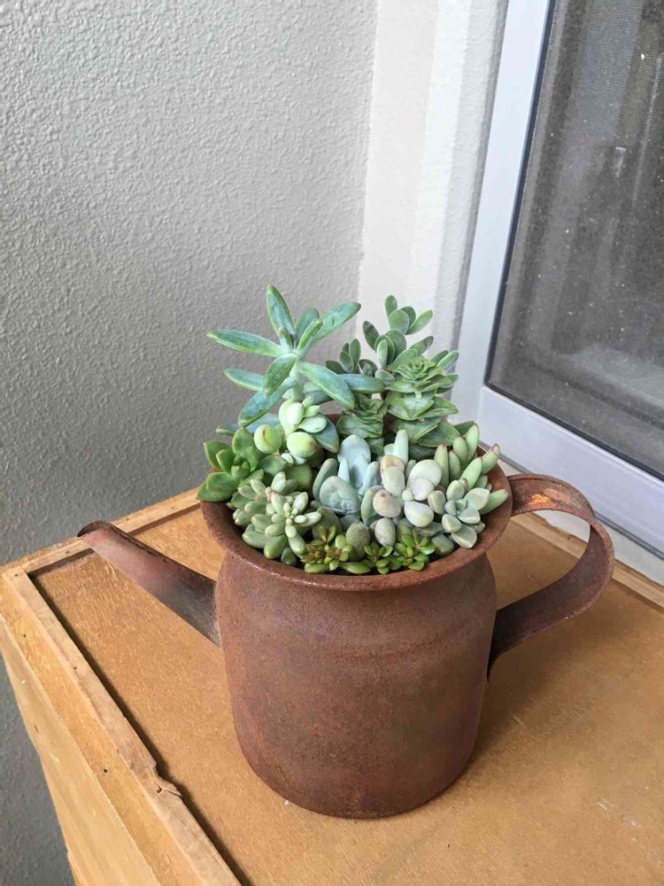 アンティーク風ジョウロに寄せていたアレンジをお直ししました🌵