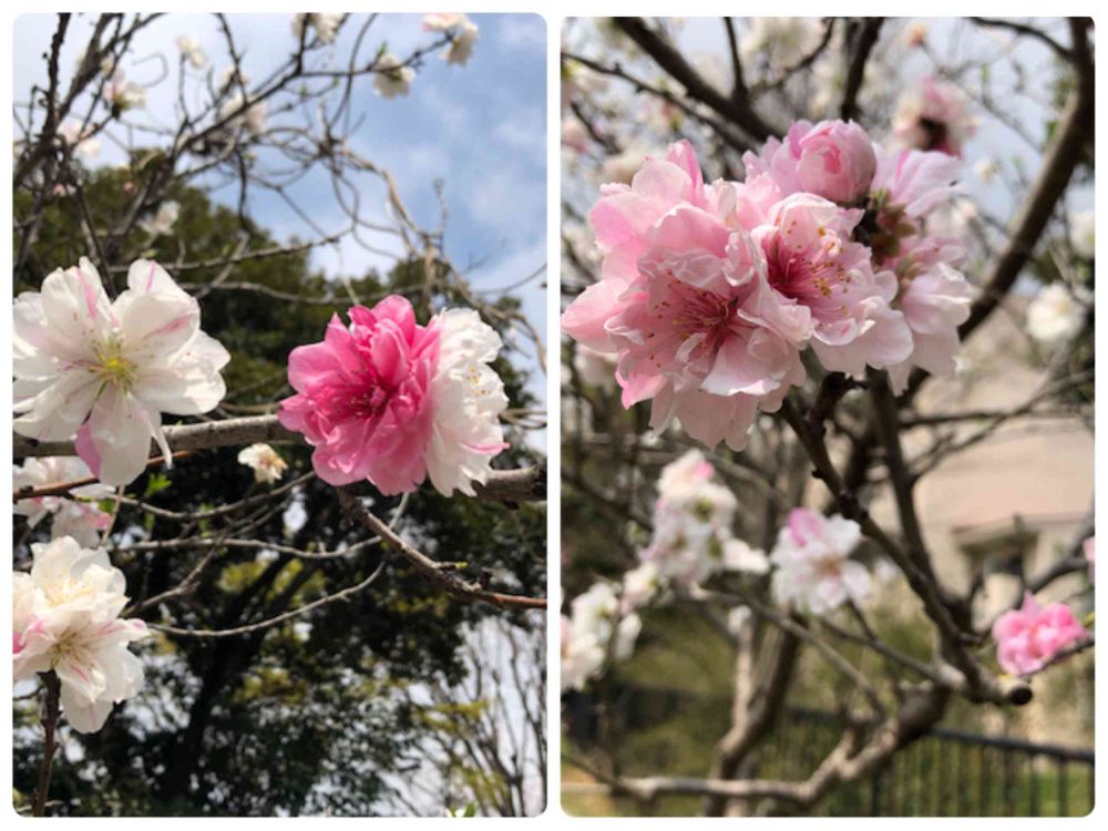 私も昨日車からみたんですが、一本の木なのに、淡いピンクと普通のピンクらしいピンクと、ショッキングピンクの花がミックスされて取り取りにさいてる木を見つけて、ちょっと見入っちゃったんです❣️