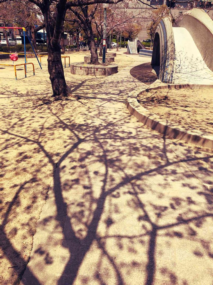見上げるばかりの桜の木を、たまには地に映る姿も眺める花見です🌸