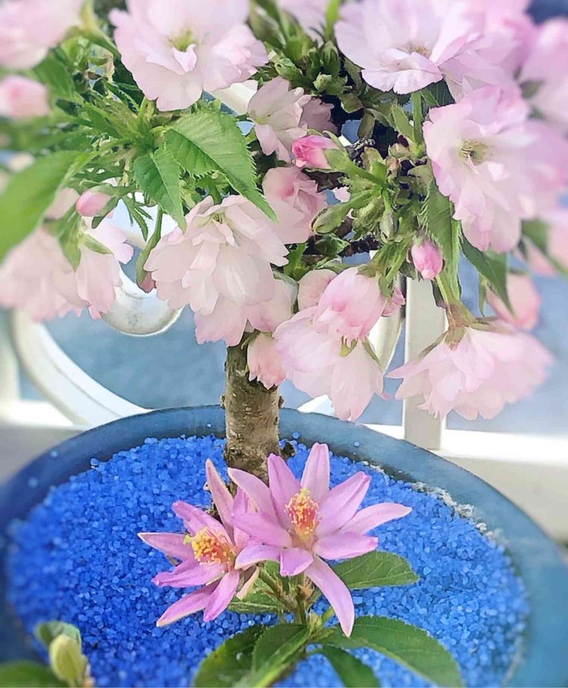桜盆栽の化粧砂、家にあった青いカラーサンドってどうよ☹️と思いつつ、無いよりはまし?あり?と思いつつ敷いてしまっていたけど
