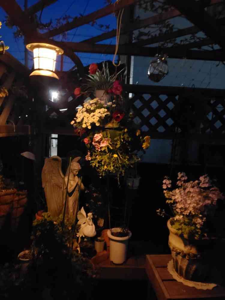 今日の夜の「祈りと癒しの園」(三角パーゴラ)です。
