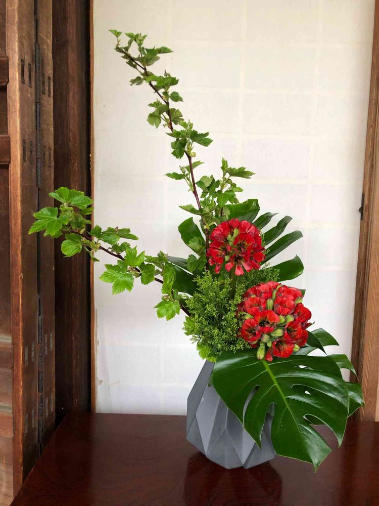 たまたま、うちの近くに遠州流の先生が住んでおられたことが幸いで、いけばなを続けられています🌸🍃