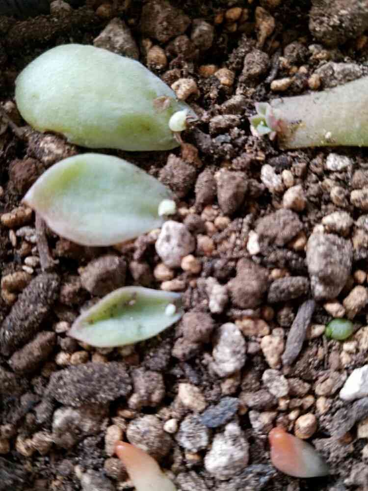 ファンクイーンのお母さんの鉢に葉挿しして何も変化放置していたのを思い出し確認したらお子様誕生してました~🙌