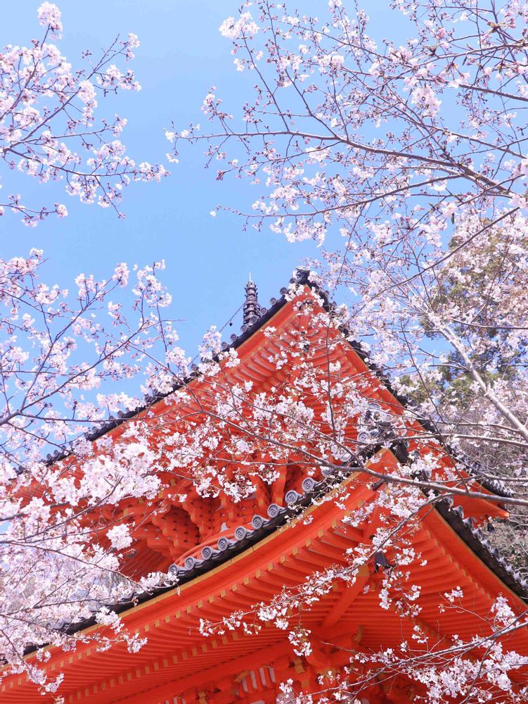 青空と朱色の塔と桜、このコラボがとってもキレイでした❤︎