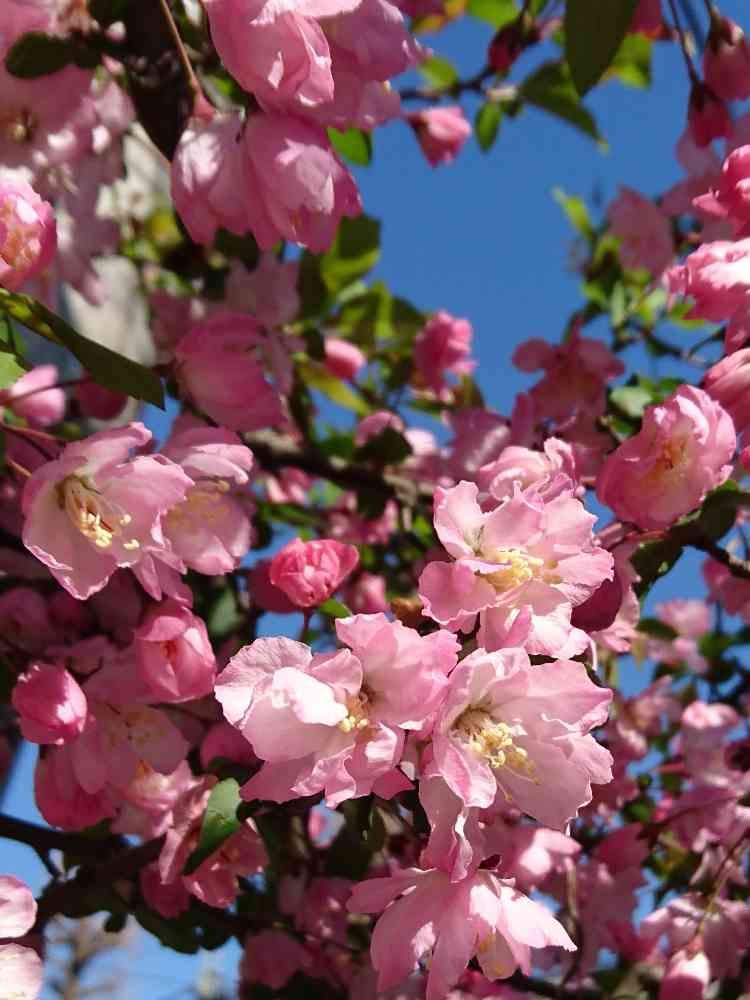 ハナカイドウも咲いてきました‼青空に映えます。でも気温は低め。日向は暖かいです😆