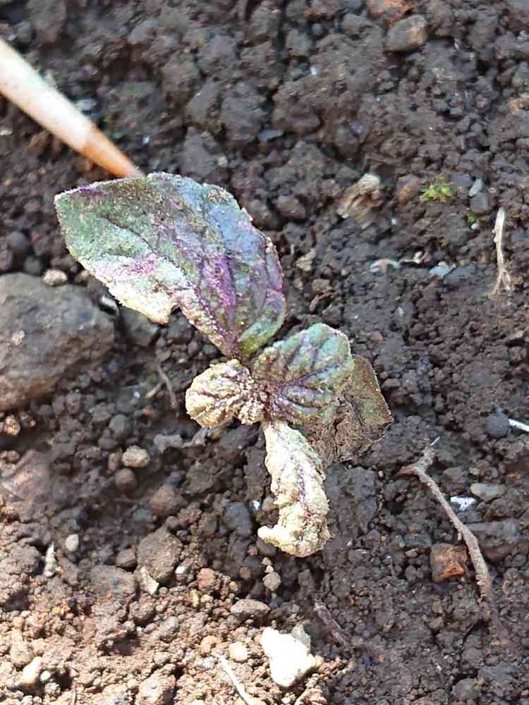 2019.04.02 庭にある4メーター弱四方の畑の地面をボーっと眺めてたらなんと赤じその芽が出ていた