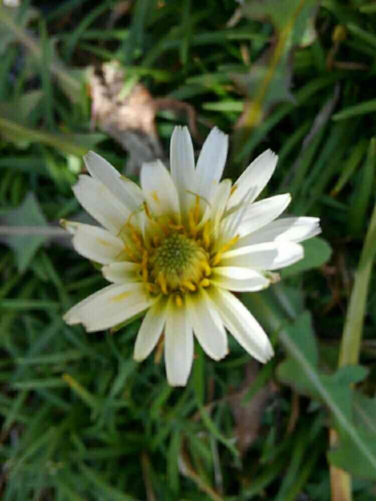 我が家の庭に、白タンポポの2輪目が咲きました。
