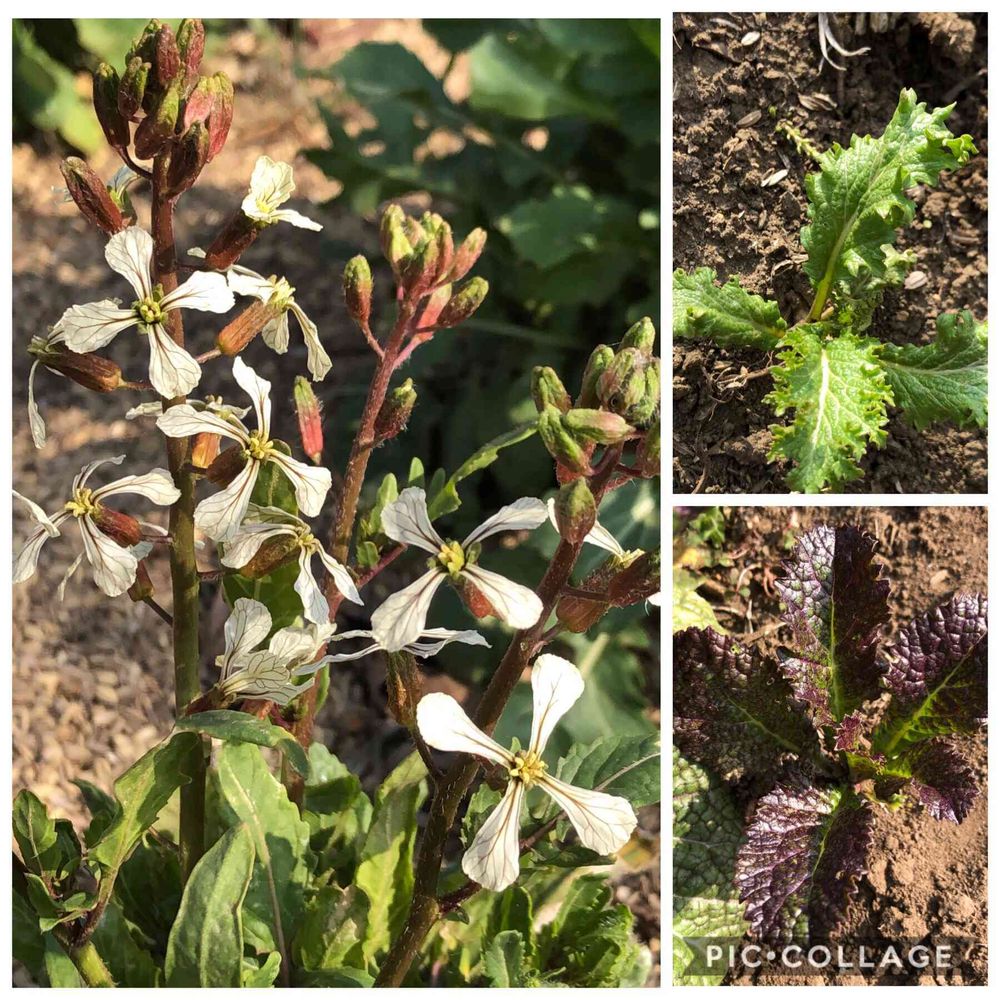 右:グリーンとレッドのマスタードが零れ種で出て来ました🌱🌱