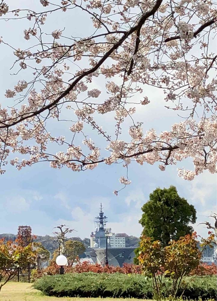 桜越しの護衛艦いずももいいなぁ~(〃'▽'〃)