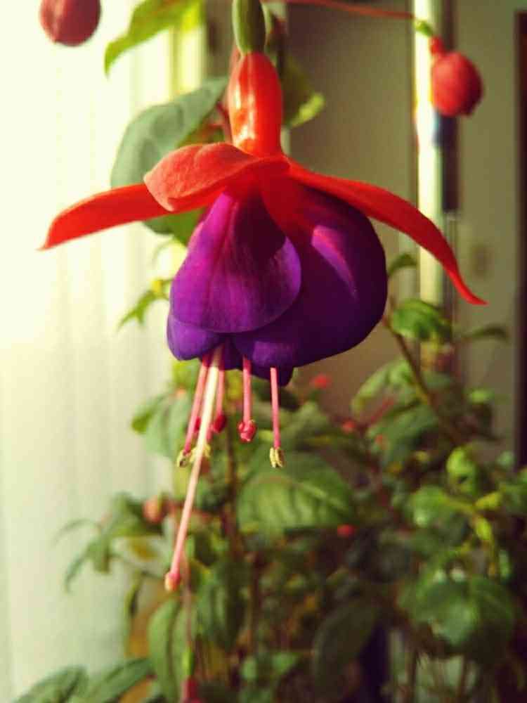 挿し木したほうのフクシアで、親の方より大きく成長して大きく開きました。