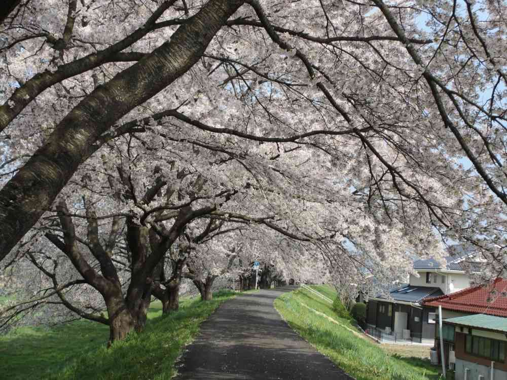 その中でもこの長く続く桜並木が大好き、桜の幹は全て太く低く咲いています