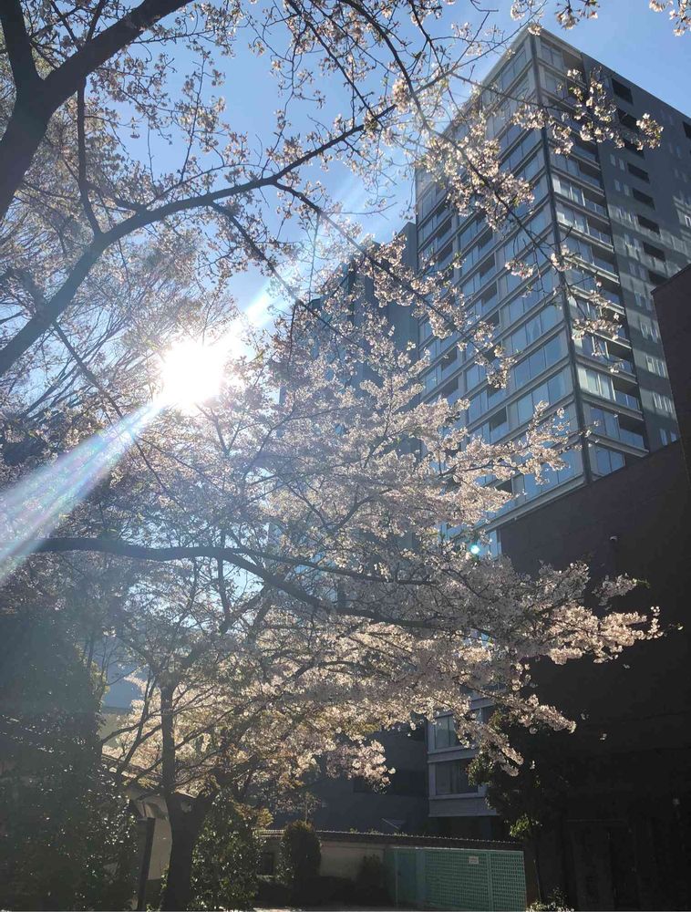 朝の通勤時、青空をバックに桜が満開でした🌸