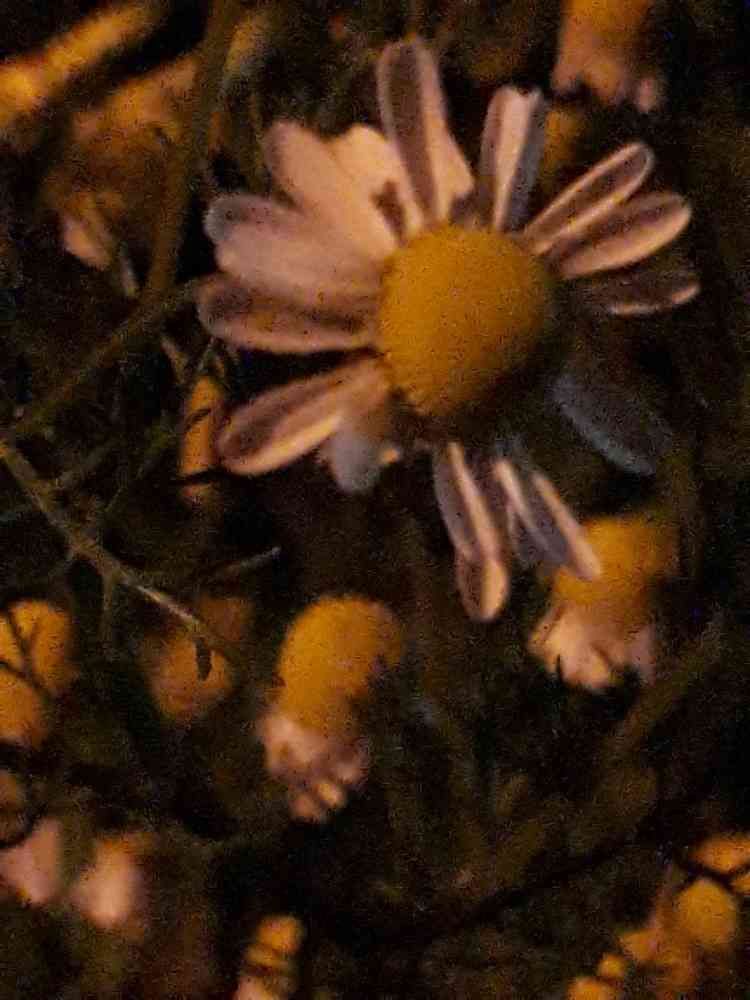 カモンミール 夜になると花びらが下向き… 一輪だけ 昼間と同じ… 優しい匂いが➰🍀