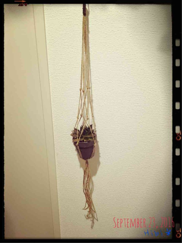 耐久性のことを考えるとマクラメ編みとかしたほうが良さげ。室内で軽めの小さな鉢、缶なら問題ないね!