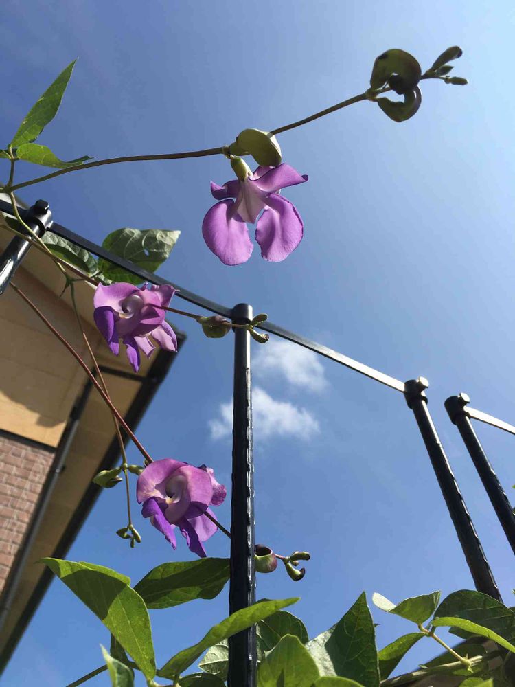 この真夏の青いスイートピーは、本来真夏に咲く予定でしたが、猛暑が嫌だったのか最近やっと咲き出したのです。これ、スイートピーて名前つくけど通常のスイートピーとはまた別物ですよ