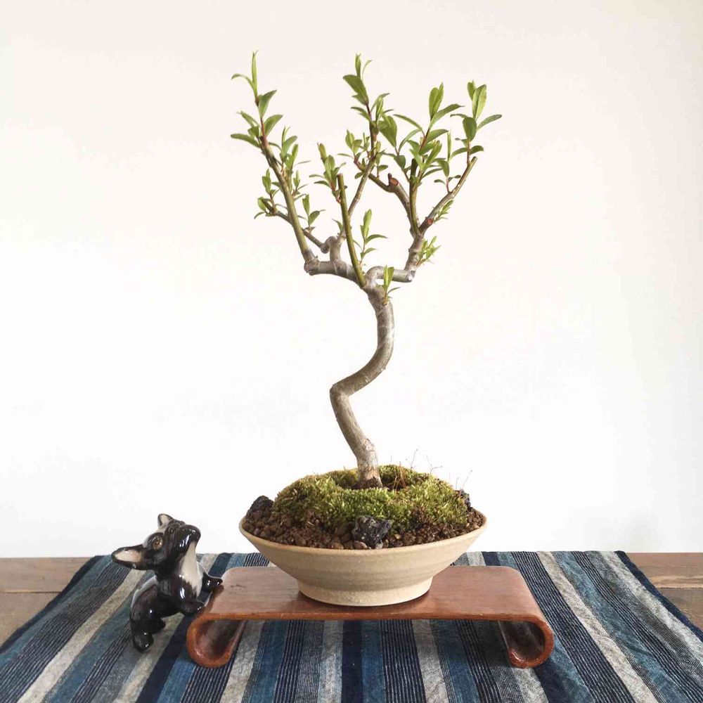 枝垂れ柳が芽吹き始めました。新緑の季節ですね。樹高23cm。6年前に挿し木でつくりました。